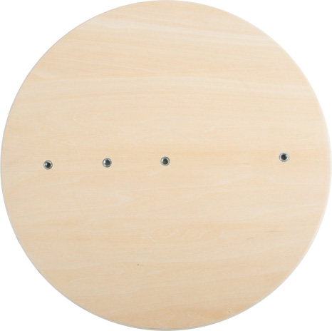 Holz. Standfläche Ø ca. 34 cm, H ca. 7,5 cm, max. Belastbarkeit 30 kg.