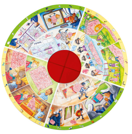 Wann? Unterschiedliche Schwierigkeitsgrade für 2-jährige bis zum Erwachsenenalter. Der richtige Zeitpunkt hängt mehr von der Puzzle-Erfahrung der Kinder, als von ihrem Alter ab. Anfangs stecken die Kinder ganze Figuren oder geometrische Formen in die entsprechenden Ausschnitte. Dann wird ein Objekt aus einzelnen Teilen zusammengefügt (Kopf + Rumpf + 2 Arme + 2 Beine ergibt einen Teddybär). Bei komplexeren Puzzlen zerteilen willkürliche Schnitte das Bild in wenige, verschieden oder gleich geformte Teile, bis schließlich die Bildteile immer kleinteiliger, ähnlicher und mehr (1000-teilige Waldlandschaft) werden. Das Puzzle-Angebot wechselt sehr schnell, vor allem bei den klein- und vielteiligen Ausgaben, weil immer neue Motive gebraucht werden. Wir beschränken unsere Empfehlungen daher auf Puzzles für Kleinkinder und auf Ausgaben, die zusätzliche Spielmöglichkeiten bieten.