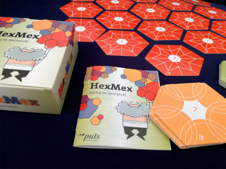 HexMex ist ein Karten-Legespiel für 1-6 SolospielerInnen mit 6 Schwierigkeitsstufen. Die Aufgabe: die jeweils 19 sechseckigen Karten eines Levels zu einer sechseckigen Waben-Form legen, die in jeder Richtung gerechnet eine stetsgleiche Summe bildet: die magische Zahl.