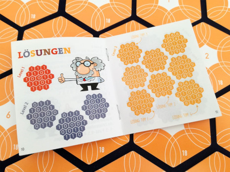 114 sechseckige Karten + 20 seitiges Lösungsheft.