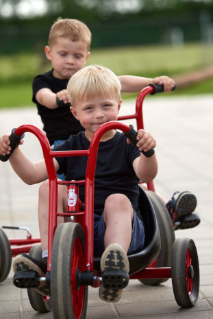 Kleinkinder lernen erst allmählich, gleichzeitig zu lenken und zu bremsen. Die Bremse bürgt also nicht in jedem Fall für erhöhte Sicherheit.