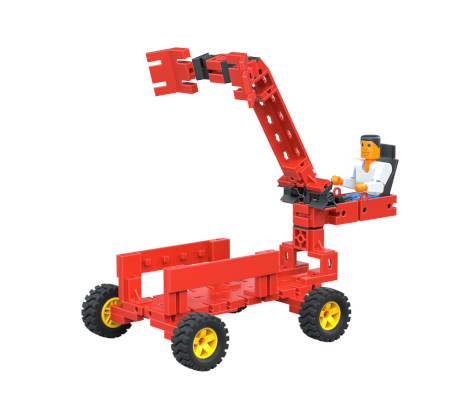 Der Einsteiger-Baukasten führt in das Bauprinzip ein. Die großen, gut greifbaren Bauteile und die altersgerechte Bauanleitung führen zu ersten Bauerfolgen in der Welt der Technik. Baubar sind Hubschrauber, Flugzeug, Auto, Windrad, Wasserspritze, Kran u.ä.
