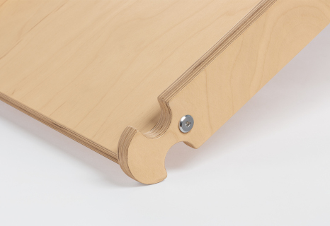 Birkenbrett massiv 18 mm und Buchensprossen, klar lackiert. Aufstellflächen rutschhemmend lackiert. Belastbarkeit 50 kg Passend für die Kletterwelt 'Kari': Als Rutschbrett oder Kletterrampe verwendbar. 115*40*6 cm