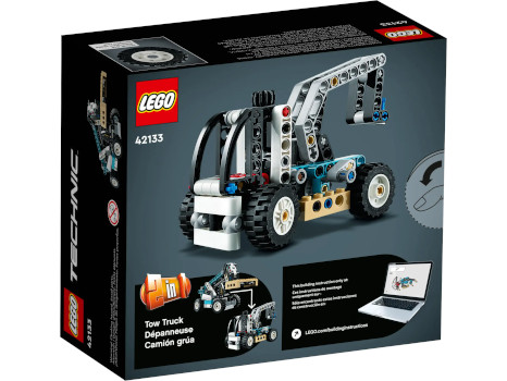 Dieses 2-in-1-Modell von LEGO® Technic lässt sich von einem Teleskoplader in einen Abschleppwagen umbauen. Der Teleskoplader verfügt über realistische Funktionen wie die Lenkung, den Teleskoparm und die kippbare Gabel. Mit der baubaren Palette können Kinder verschiedene Rollenspiele auf der Baustelle nachspielen. Der Abschleppwagen verfügt über eine Lenkung mit beweglichem Kranarm.