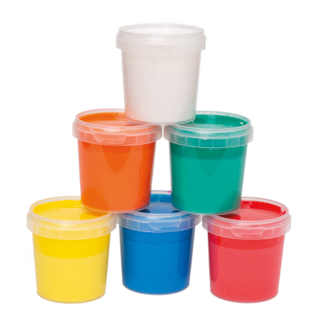 Für Malanfänger bedeutet der direkte Kontakt mit der Farbe eine intensivere Erfahrung als mit Pinsel und Stift. Dann kann auch mit anderen Utensilien wie Schwamm, Spachtel oder verschiedenen Pinseln gemalt und ausprobiert werden. Verschiedene Techniken wie Tupfen, Gravieren, Stempeln, Spachteln, Korken-, Blätterdruck und anderes mehr auf Papier, Pappe, Glas, Holz oder Karton sind möglich. Die Farben sind mit Wasser und Seife leicht aus den Händen abwaschbar. Beschmutze Kleidung schnellstens einweichen. Am besten nur mit Malkittel arbeiten.
