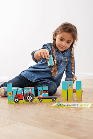 Puzzle in Form von Würfeln sind meist aus Holz und in der Thematik und Gestaltung eher für jüngere Kinder ansprechend.