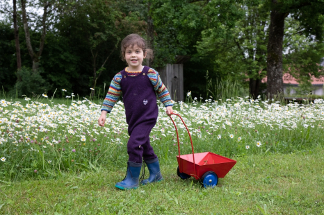 Das Metallwägelchen kann gezogen oder geschoben werden und ist vielseitig einsetzbar. Besonders geeignet für Kinder, die eine Schubkarre noch nicht balancieren können.