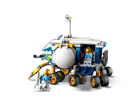 Einzelspielzeug oder Ergänzung zum Thema Raumfahrt. Der Inhalt mit Anleitung ist in Untermodelle aufgeteilt. So kann erst einmal mit einem Teil begonnen werden. Mit dem fertigen Modell kann gespielt werden. Die 12 Räder des Rovers lassen sich in jede Richtung lenken. Außerdem verfügt er über 2 Forschungsarme und bietet 3 Astronauten-Minifiguren Platz. Zusätzliches Material für einen Meteor.