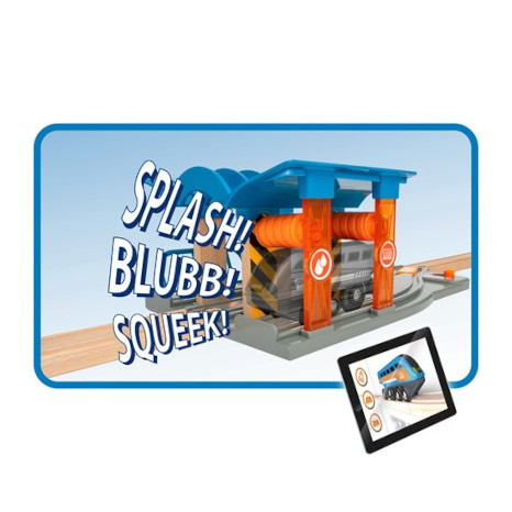 Durch die Smart Tech Sound-Technologie kann die Lok mit ihrer Umgebung kommunizieren und automatisch auf Smart Tech Zubehör reagieren. Wird der Action Tunnel zusammen mit der Smart Tech Sound Lok (nicht enthalten) verwendet, werden Funktionen der Werkstatt oder der Waschanlage ausgelöst. Das Zubehör ist kompatibel mit der gesamten BRIO World. Smart Tech ist jedoch nur in Kombination mit dem entsprechenden Smart Tech Zubehör voll funktionsfähig.