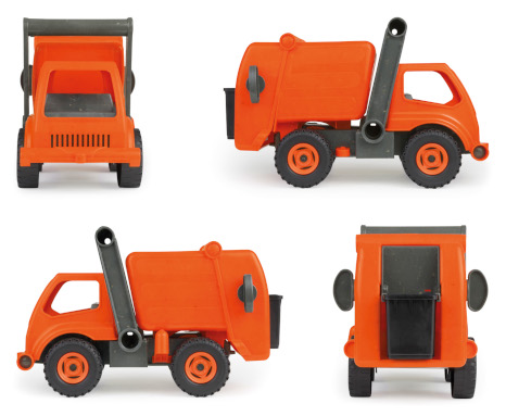 Das stabile, robuste Fahrzeug eignet sich für erste Erfahrungen mit einfachen Funktionen umzugehen. Das Führerhaus lässt sich öffnen, der Müllbehälter ist verriegelbar und es gibt einen Hebel für die Kippfunktion, so dass die Mülltonne ausgeleert werden kann.