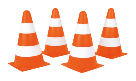 Die Pylonen aus stabilem Kunststoff, sind standfest und gut geeignet als Abgrenzung einer Spielbaustelle oder Markierung zum Slalom fahren u.a.m. Die Farbgebung gibt den Leitkegeln ein realistisches Aussehen.