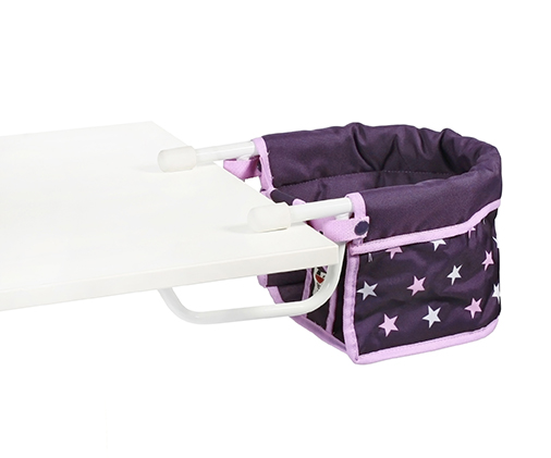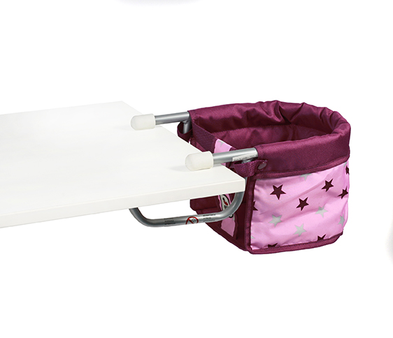 Der Tischsitz für Puppen ist geeignet für alle gängigen Tischplatten, er wird einfach am Rand des Tisches eingehängt. Es passen Puppen in der Größe bis ca. 60 cm hinein. Der Bezugsstoff ist abwaschbar und kann vom Gestell abgenommen werden. Wird der Tischsitz mal nicht gebraucht, kann das Stahlgestell auch auseinandergebaut werden.