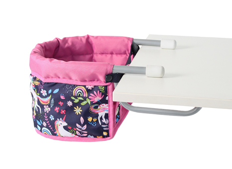 Der Tischsitz für Puppen ist geeignet für alle gängigen Tischplatten, er wird einfach am Rand des Tisches eingehängt. Es passen Puppen in der Größe bis ca. 60 cm hinein. Der Bezugsstoff ist abwaschbar und kann vom Gestell abgenommen werden. Wird der Tischsitz mal nicht gebraucht, kann das Stahlgestell auch auseinandergebaut werden.