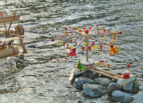Wasserrad, einer gebauten Seilbahn oder Windmühle beginnen, wobei die Kinder die Technik erkennen und nachvollziehen können.