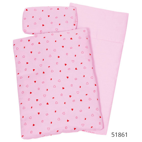 Baumwolle, Füllung PE Kopfkissen 22*10 cm, Oberbett 41*31 cm, Unterbett 54*25 cm.