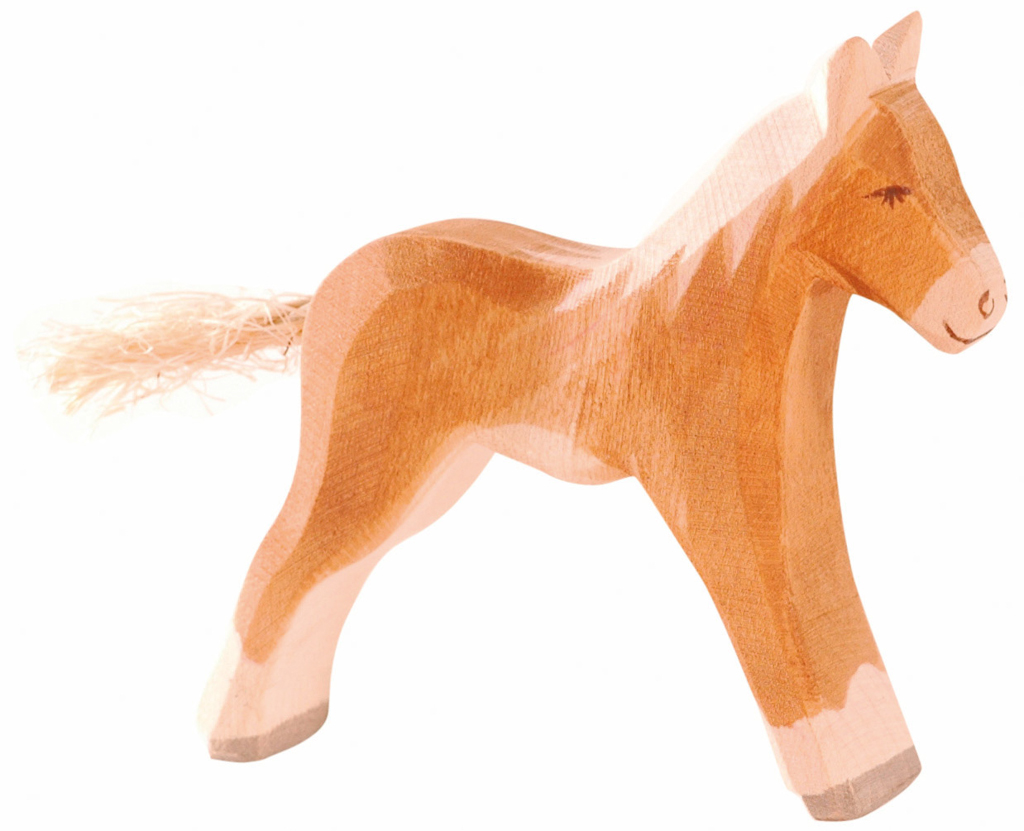 Die ansprechende Gestaltung der handgearbeiteten Tiere beschränkt sich auf ihre wesentlichen Merkmale, ob stehend, liegend oder fressend usw. Das unterstreicht ihre handwerkliche Qualität und regt zu einem fantasievollen Rollenspiel an.