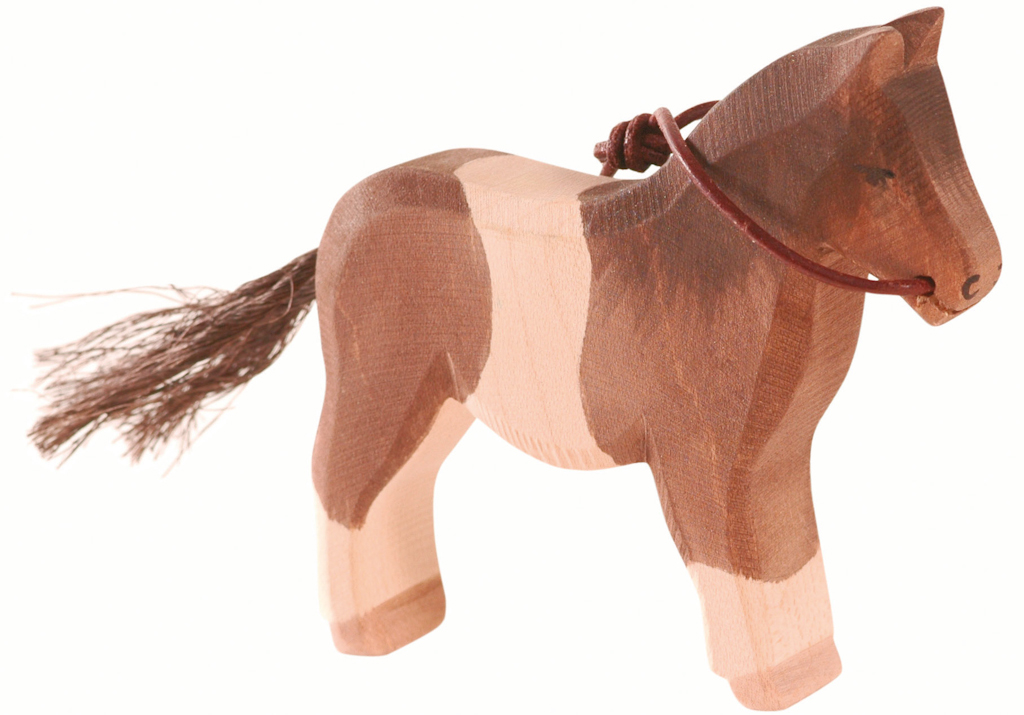 Ahorn/Esche natur + farbig, geölt mit biologischem Öl. Zügel Lederriemen, Schweif Sisal Kordel. H ca. 8-13,5 cm.
