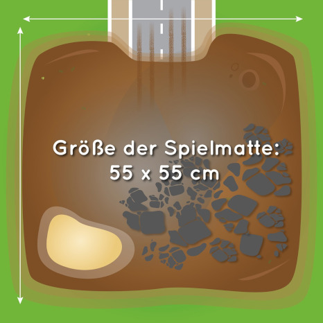 Die verhältnismäßig großen und quadratischen Matten lassen sich zu Straßen und Landschaften zusammen legen. Das neutrale und ruhige Design lässt viele Spielmöglichkeiten zu. Bunt und lebendig werden Landschaft und Straßen durch das Aufstellspielzeug, womit Kinder nach eigenen Vorstellungen ihre Spielwelten gestalten. Die Matten sind durch die gummierte Unterseite rutschfest, geräuscharm und auch isolierend. Und durch die einzeln kaufbaren Teile jederzeit erweiterbar.