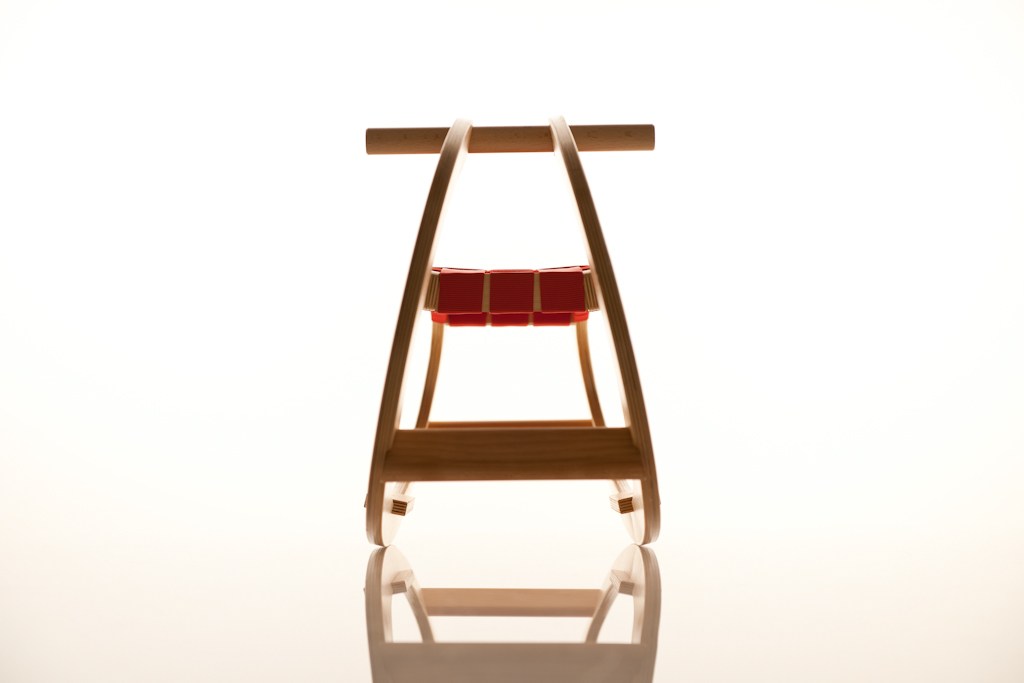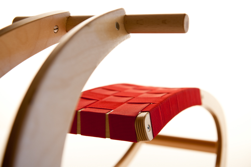 Birke Multiplex + Buche natur, Sitzbespannung rot (PP). 76*27*40 cm.