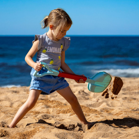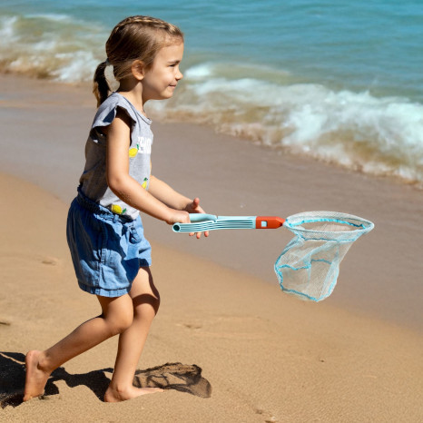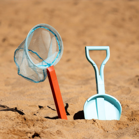 Dieses Set vereint Kescher und Schaufel und bietet durch die Verlängerung einen langen Einsatz auch für größere Kinder. Durch Klicken lässt sich ein Kescher oder eine Schaufel an den Griff klicken. Dieses Spielgerät ist sehr geschickt, wenn man wenig einpacken möchte und bietet einen großen Spielspaß an Strandtagen am Wasser und im Sand.