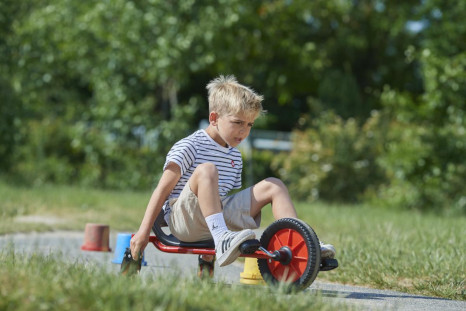 Mit diesem pedalbetriebenen Fahrzeug wird die Manövrierfähigkeit der Kinder geschult: Mit der Lenkung über die zwei Griffstangen steuert man die Hinterräder. Für Kinder, die bisher nur Fahrzeuge mit steuerbaren Vorderrädern kannten, ist dies eine neue Herausforderung.