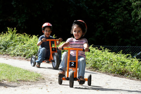 Kleinkinder lernen erst allmählich, gleichzeitig zu lenken und zu bremsen. Die Bremse bürgt also nicht in jedem Fall für erhöhte Sicherheit.