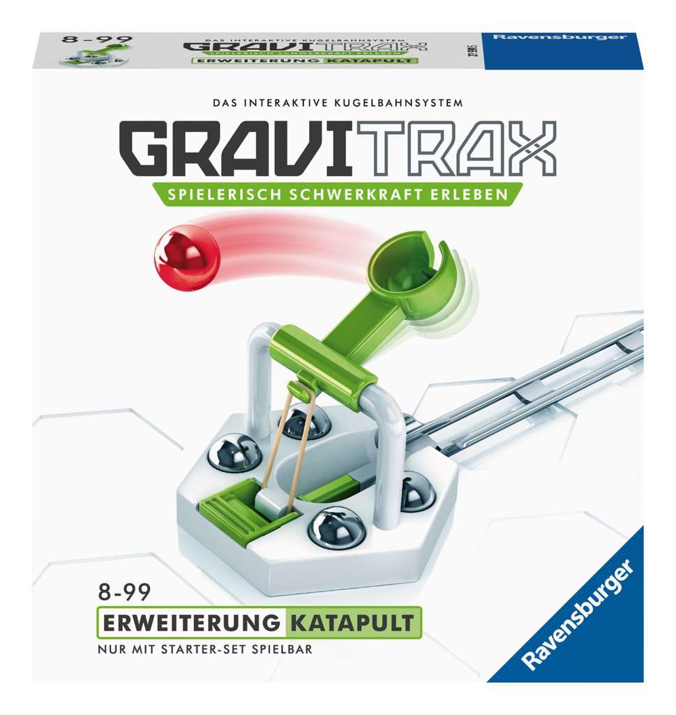 Mit dem Katapult werden Höhenunterschiede und Hindernisse überwunden, wenn es geschickt eingesetzt wird. Kombiniert mit dem GraviTrax Starter-Set bringt es mehr Action in die Streckenverläufe.