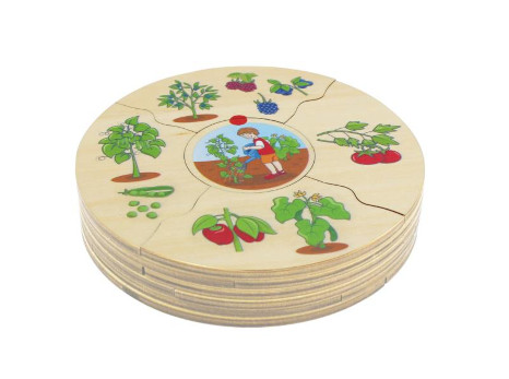 In diesem Zuordnungspuzzle sortieren die Kinder, was wo wächst. Dabei gibt es 6 Themen (Kreis in der Mitte) als Anbaugebiete: über der Erde, unter der Erde, am Baum, am Strauch, auf dem Feld oder im Wasser. Jeweils 4 passende Puzzleteile mit Obst, Gemüse oder Nahrungsmitteln können der Anbauart zugeordnet werden. So entsteht bei richtigem Zusammensetzten ein Kreis. Die Puzzleränder stellen die Erfolgskontrolle dar: nur eine Variante der Zähnchen passt. Das Puzzle eignet sich auch zur Wortschatzarbeit und ist für einen langen Einsatz in Einrichtungen gut geeignet. In dem beiliegendem Booklet gibt es noch detailreiche Informationen zum Thema.