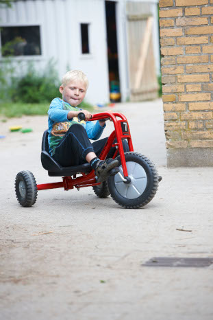 Das robuste Dreirad besticht durch seine Lenkung: Kinder können aufgrund des gebogenen Lenkers enge Kurven fahren. Durch das starke Profil der Reifen kippen sie in engen Kurven nicht um. Dies sorgt für zusätzlichen Fahrspaß auch für ältere Kinder.