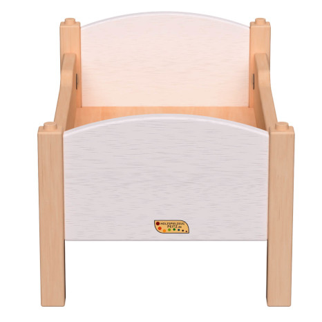 Ein stabiles Puppenbett ist aus Holz und gut verarbeitet.